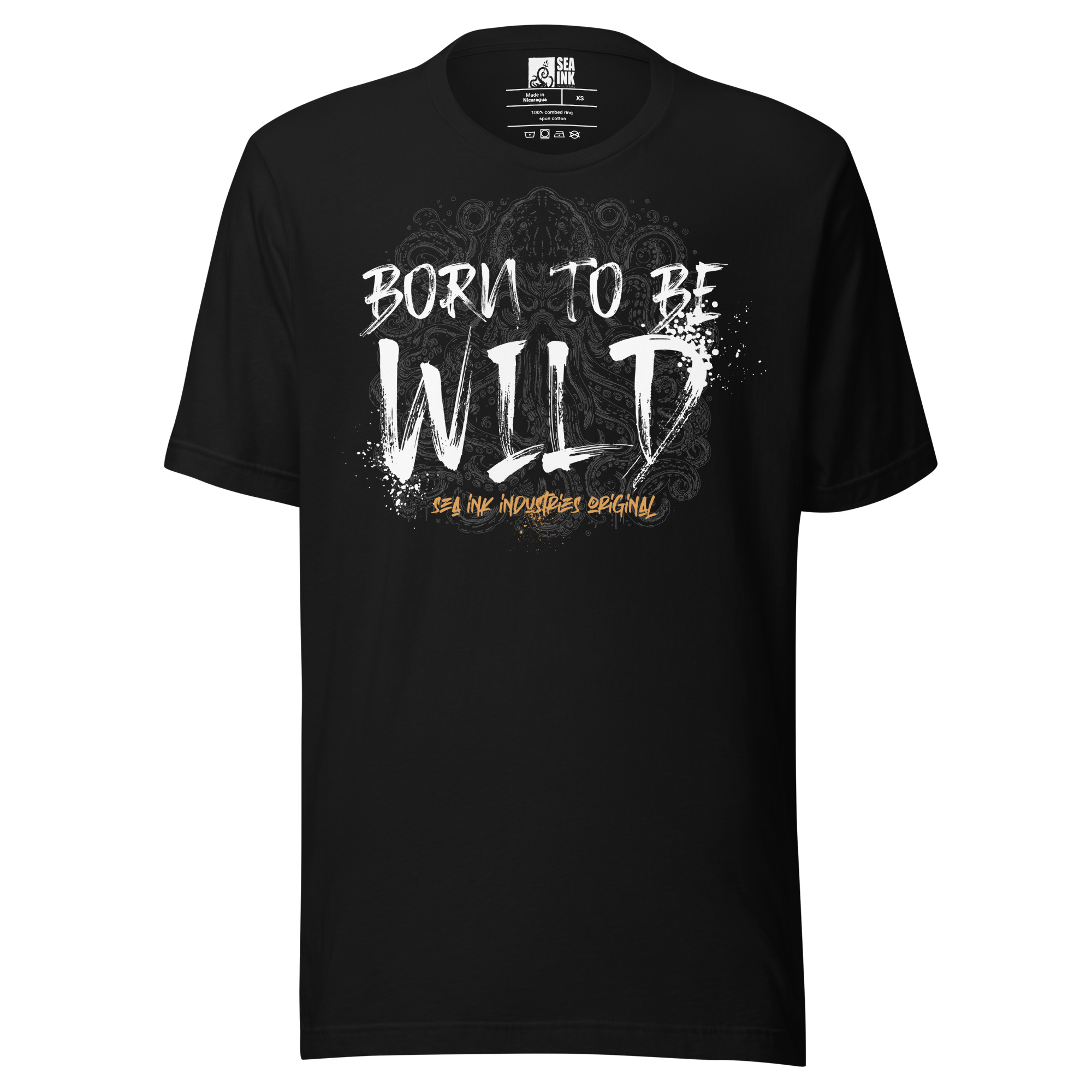 Le visuel “Born to be wild” est travaillé dans un style graffiti, avec une typographie brute inspirée de la rue. Un design direct, sans détour, qui colle parfaitement à l’univers streetwear.